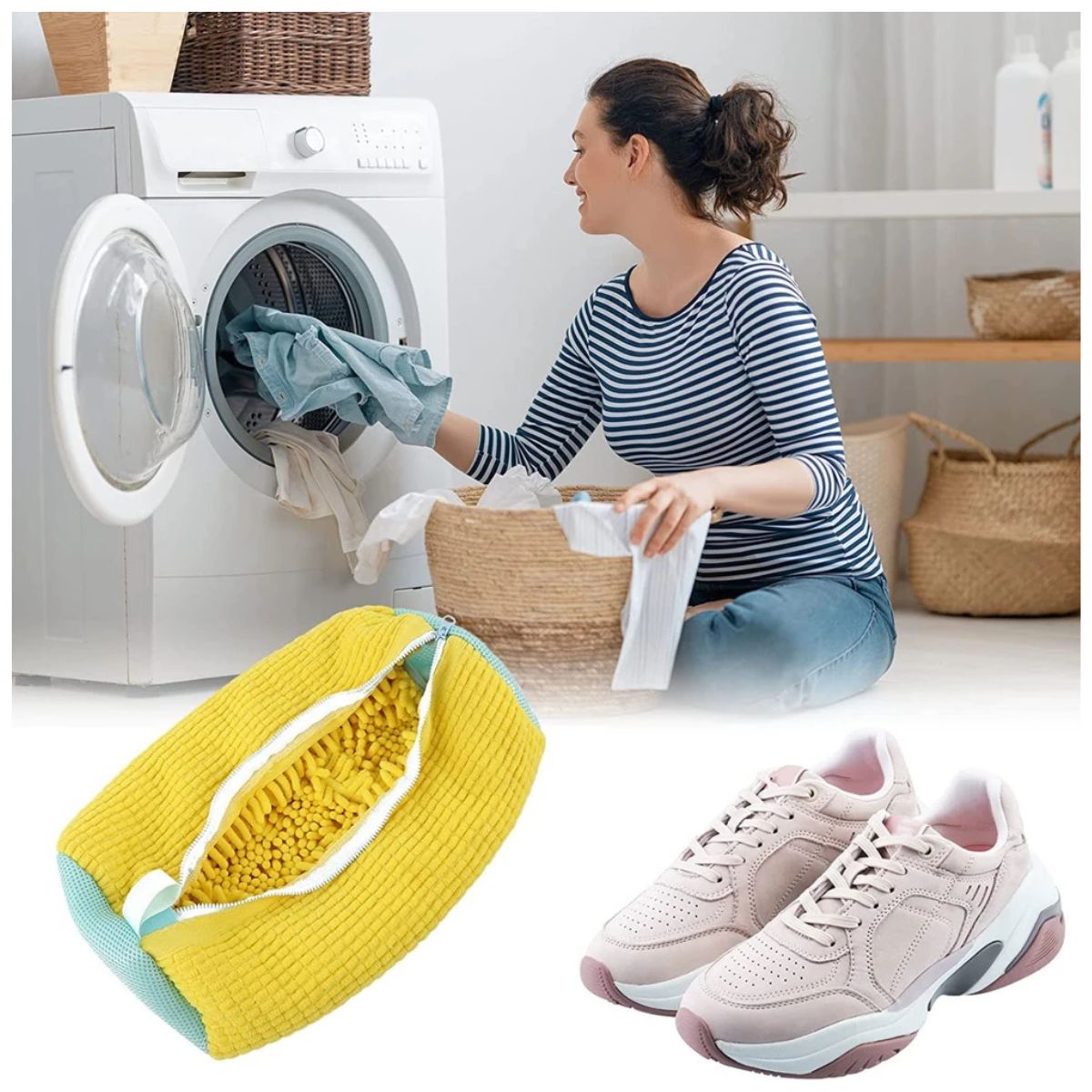 - Previene Deformaciones: La estructura de la bolsa mantiene las zapatillas seguras mientras son lavadas, evitando que se deformen o dañen.